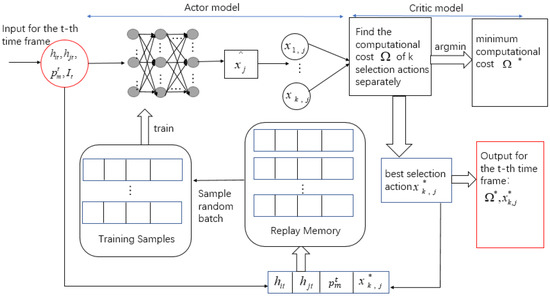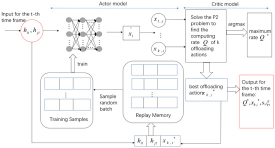 Two time-varying channel gains are used as the input of the offloading scheme in the t-th time frame. The purpose is to find the offloading action that maximizes the computing rate of the system. Therefore, the algorithm structure is shown in Figure 5.
