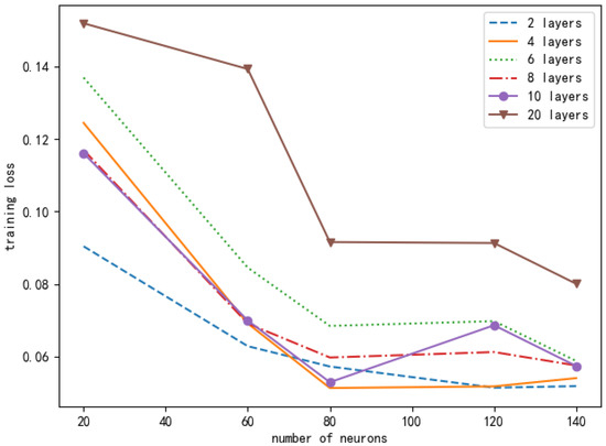 Comparison of loss function values under different numbers of neurons and different neural network layers in a DNN.