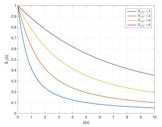 Assuming a uniform link survival function , the system’s survival function, Equation (27), becomes