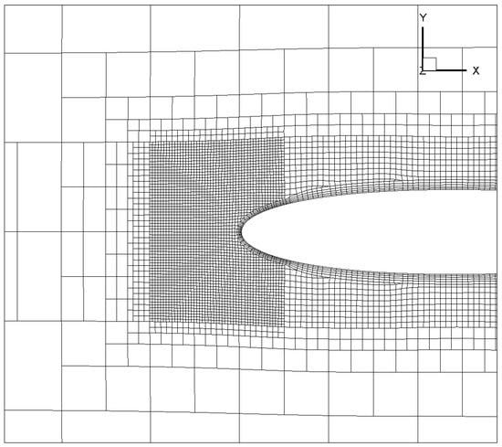 Under the icing conditions, it is considered that the airflow and the droplet are one-way coupled, namely the airflow field affects the droplet field only since the volumetric fraction of droplets is too low (usually below ) to make the droplet field affect the airflow field comparatively [22], which means that the airflow field and the droplet field can be solved separately: in each iteration step, the solution of the airflow field is first solved, and then the result is used to solve the droplet field.