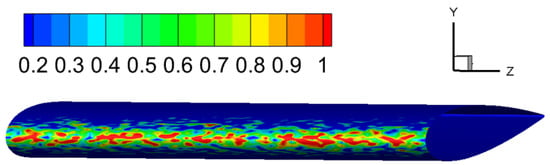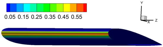 For the M6 wing simulation, the issue of uneven load balancing for the particle tracking is more severe, and the generation of a high-quality true-3D mesh certainly requires more time. It takes about 4–18 h depending on the Eulerian/Lagrangian method selected.