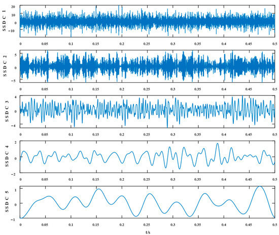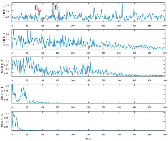 Similarly, the simulated signals were processed by SSD and TVFEMD methods to obtain the decomposition results and their envelope spectra shown in Figure 6, Figure 7, Figure 8 and Figure 9.