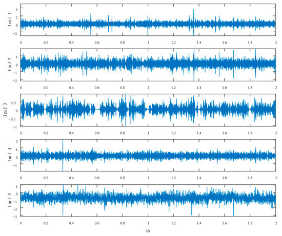In order to implement the adaptive decomposition process of the new method, we designed the iterative approach and the termination conditions concerning the energy ratio, in which the termination condition of the iterative process is judged by judging the ratio of the energy of the residual signal obtained from each iteration to the energy of the signal at the initial entry into the iteration, the energy ratio , is less than 3% when the iteration ends. For the k-th residual signal , the signal energy is calculated as follows: