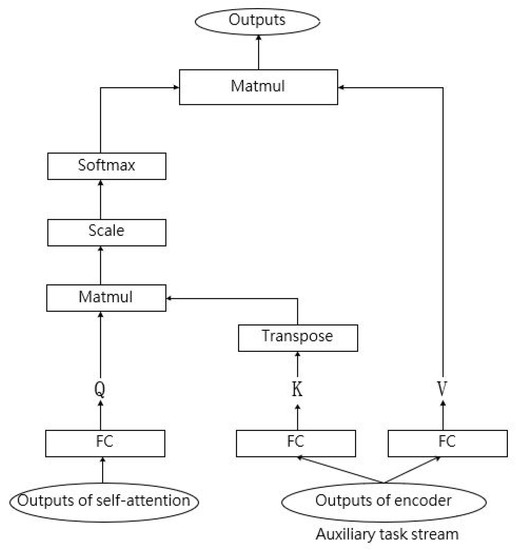 In Formula (4), is the dimension of and , which is used to prevent the soft-max function from generating very small gradients. The auxiliary cross-attention performs in multi-head attention mechanism mode.