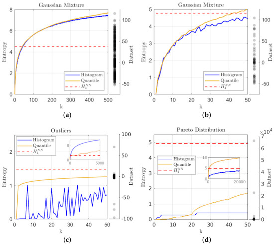 k in the presence of outliers, since histogram-binning will generally involve many bins with no representatives, which in turn will not be involved in the computation of entropy.