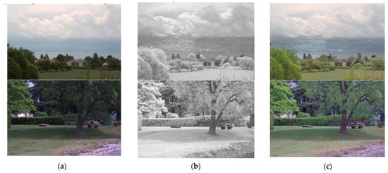 - Son, D.-M.; Kwon, H.-J.; Lee, S.-H. Visible and Near-Infrared Image Synthesis Using PCA Fusion of Multiscale Layers. Appl. Sci. 2020, 10, 8702. [Google Scholar] [CrossRef]