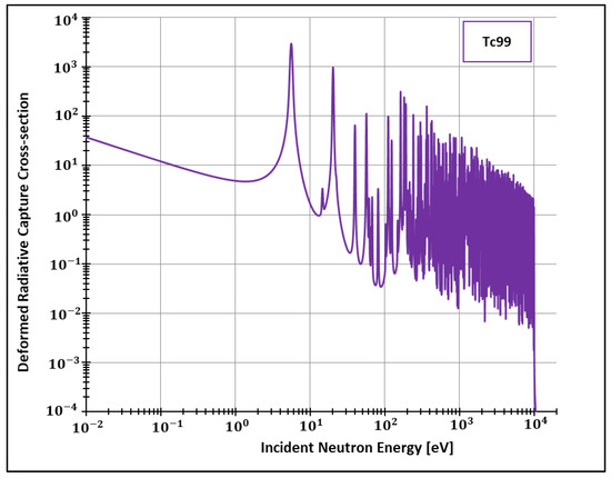 Deformed Radiative capture cross-section for Technetium 99 considering and the 5.58 eV peak.