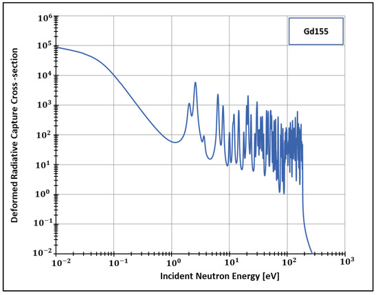 Deformed Radiative capture cross-section for Gadolinium 155 considering and the 69.4 eV peak.
