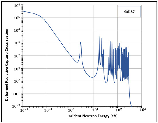 Deformed Radiative capture cross-section for Gadolinium 157 considering and the 2.83 eV peak.