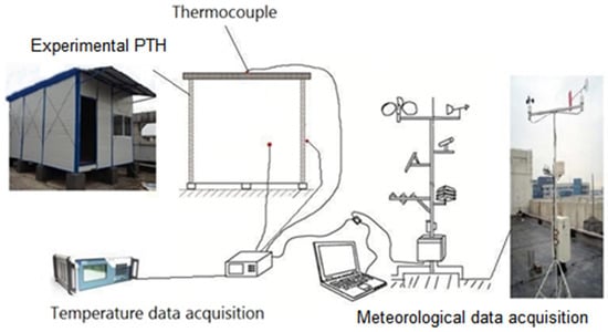 The experimental PTH as displayed in Figure 2 was placed on the rooftop of a four-story building on the campus of Sichuan University in China, and the campus is located in the hot-summer and cold-winter zone. There were no high-rises to shade the PTH and no electrical and thermal equipment inside the PTH. The door and windows of the PTH were closed during the experiments.