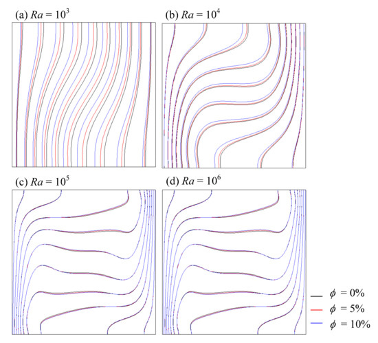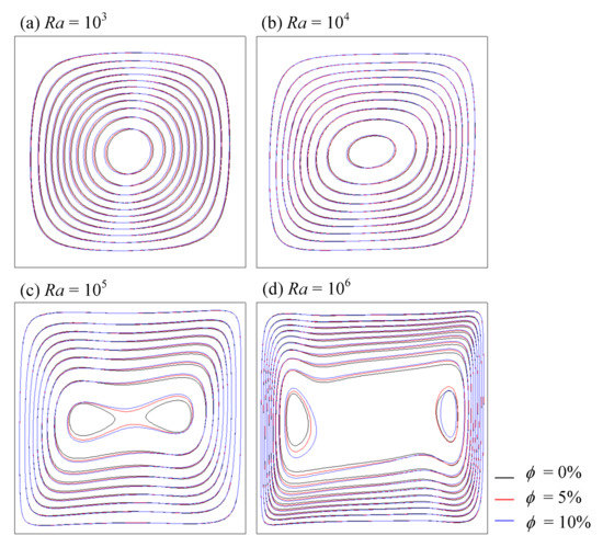 3 or Cu nanoparticles, in a square cavity for Rayleigh number 10