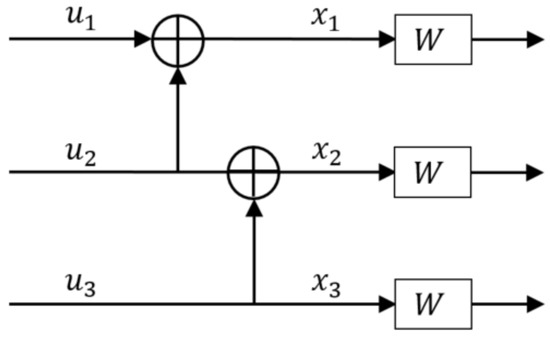 W denotes the real bit channel. At the final output stage, for simplicity, we denote (