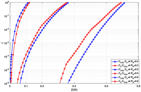 for the analysis in this section as they have shown to depict contrary behavior in polarization circuit designs. Simulations over different values of the total number of stages have shown that the polarization exponents (a metric proposed in [