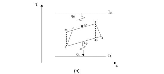 - Yasunaga, T.; Ikegami, Y. Application of finite time thermodynamics for evaluation method of heat engines. Energy Procedia 2017, 129, 995–1001. [Google Scholar] [CrossRef]