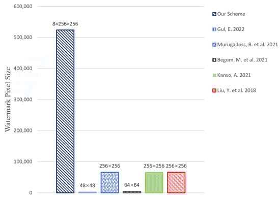 Note that an imperceptible image watermark scheme should be built with large capacity, strong robustness, high security, and good imperceptibility [7]. A watermarking scheme with great capacity could surely contain more information, offering more essential and detailed materials supporting its function like providing authentication or information hidden, e.g., embedding different copyrights into images like digital collections with more than one author [14], or during the distribution of the media content from producers, retailers, and customers to protect the benefits of both the producer and the middle distributors [15]. Unfortunately, most state-of-the-art schemes as discussed above are insufficient, especially in the capacity. Therefore, putting forward algorithms for preserving the desired properties of a watermarking procedure is quite essential.