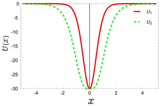 As mentioned above, the Shannon information entropy has been studied for many quantum soluble potentials. Based on their analytical wave functions, it is not difficult to calculate the wave function in the momentum space by studying the traditional Fourier transformation. Among these soluble potentials, the hyperbolic potentials have played an important role in semiconductor physics, e.g., the development of related research on graphene [14,46,47,48,49]. Nevertheless, a number of quantum systems cannot be solved analytically except for numerical study. Stimulated by our previous work [30,45], we are going to study the quantum information entropy for hyperbolic potentials in the time-independent fractional Schrödinger equation. The hyperbolic potential wells, which belong to single-well potentials with a minimum value u, are defined as [29,50]
