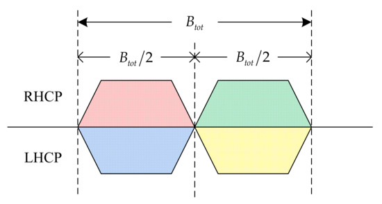 where and are the power constraints of the model, typically handled by the proportional reduction method [20]; is the bandwidth maximum constraint; and indicates that the bandwidths of adjacent beams with the same polarization mode cannot overlap.