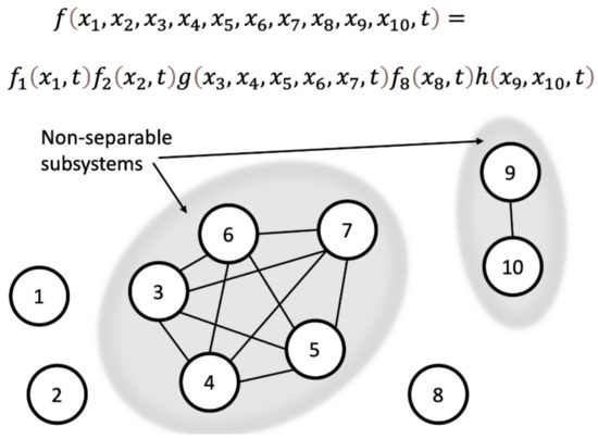 In this example, the degree of freedom is separable from the rest of the system, . Another example is shown in Figure 1, where we consider 10 degrees of freedom. The whole system is separable, but subsystems consisting of the degrees of freedom and are non-separable:
