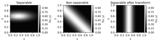 Furthermore, transformations such as the one used in the example above can be applied to any physical system. In standard quantum mechanics (and therefore in the classical limit of quantum mechanics as well), one can change the Hilbert space basis in which a system is considered to a different basis using unitary transformations [32,47]. A system that is non-separable in one basis may become separable in a different basis, as we have just seen. However, the factorization problem—finding the basis in which the wave function is factorized into the largest number of functions describing independent subsystems—has not been solved in its general form [32].