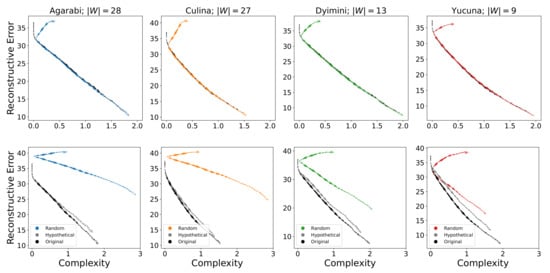 In conclusion, our results suggest that to the extent that language is iconic and thus communicatively informative, language acquisition may be sufficient to explain language evolution. The diversity of attested systems is then governed by the amount of complexity invested in encoding the world (as argued by Zaslavsky et al. []). However, given that a large, interesting percentage of language is non-iconic [], it is important to chart the acquisition, communicative, and goal-achievement constraints that shape the evolution of linguistic systems. It would not be surprising at all if language evolution over both the acquisition and dyadic coordination timescales (as argued by [,,]) is required to explain the full complexity of natural language evolution. We offer our analysis approach, i.e., multiple rate-distortion problems constrained by shared assumptions, as one possible method for characterising these influences on cognitive technologies.
