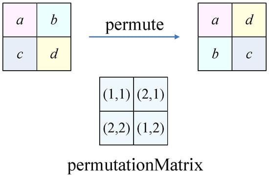 Figure 5. The equivalent permutation. - Simple forward diffusionThe simple forward diffusion is implemented according to Equation (17), where is the simple forward diffusion result, S represents the input image after permutation, and ; .