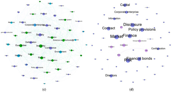 Overall, four main topics were summarized based on the detected modules, namely, Topic 1: industry development, Topic 2: health care, Topic 3: financial market, and Topic 4: industry management. The topic structures of different phases are presented in Table 4. The detailed semantic structures are presented in Appendix A Figure A3, Figure A4, Figure A5 and Figure A6.