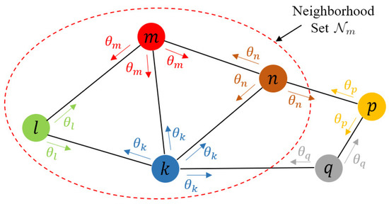 In this paper, we consider a network consisting of M nodes. We could use a graph G = ( M , E ) to represent this network. It consisted of a set of nodes M = { 1 , 2 , , M } and a set of edges E . Each edge ( m , n ) E connected a pair of distinct nodes. We used N m = { n | ( m , n ) E } to represent the set of neighbors of node m M .