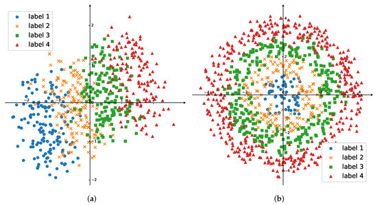 As proved in [28], if dimensional number D is large enough, z ( x ) T z ( x ) can approximate K ( x , x ) well, and z ( x ) can approximate ϕ ( x ) well. According to Cover’s theorem [29], a complex pattern-classification problem nonlinearly cast in a high-dimensional space is more likely to be linearly separable than it is in a low-dimensional space. Therefore, to ensure good performance, we should set a relatively large D. For other shift-invariant kernels such as Laplacian and Cauchy, the authors in [28] provided corresponding finite-dimensional random approximate functions. For additive homogeneous kernels, such as Hellinger’s, χ 2 , intersection and Jensen-Shannon, the authors in [30] also provided efficient finite-dimensional approximate mapping functions. For a linear kernel function, random approximation is not necessary, so we defined z ( x ) = ϕ ( x ) = x .