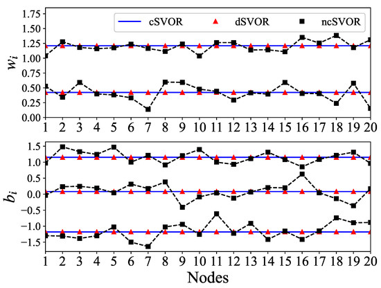In centralized SVOR, the objective is to find an optimal direction w and a vector b . If the data from all the nodes of the distributed network can be collected together, then parameters θ = { w , b } can be obtained by solving Problem (1).