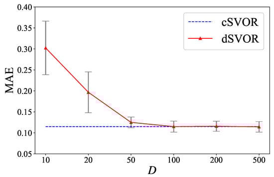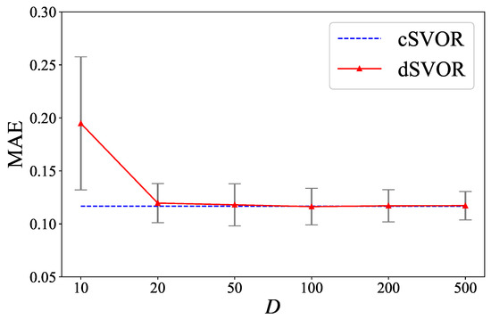 In the above steps, a D-dimensional random approximate function z ( x ) is used to approximate the unknown mapping function ϕ ( x ) . In general, a large D can lead to small approximation error and good classification performance. However, an overlarge D may cause redundancy, which wastes storage space, and brings high computational complexity and high communication costs. There is a trade-off between the above two aspects, so we added a sparse regularization term. The regularization term pushes some dimensions of w m to 0, which means that these dimensions are redundant and can be discarded. When some dimensions of w m converge to 0, these dimensions do not need to be calculated, stored and transmitted.