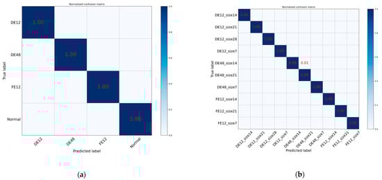 The confusion matrix of the MOCNN model for the Level_1 and Level_2 samples: (a) Level_1(Type); (b) Level_2(Size).