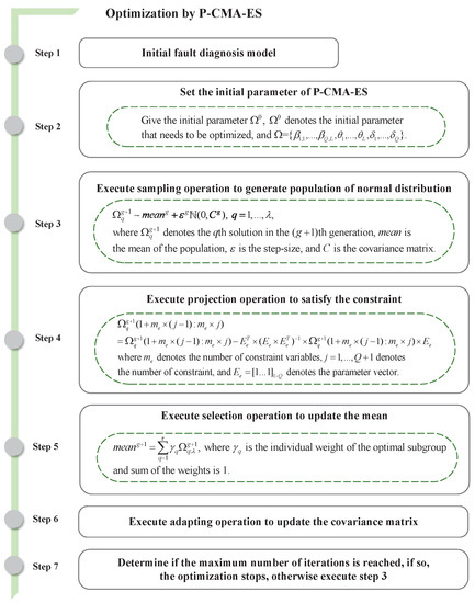 Therefore, to solve the uncertainty of expert knowledge, this paper uses the P-CMA-ES algorithm to achieve the optimization of the parameters of this fault-diagnosis model. The objective function for the optimization of the model parameters can be defined as