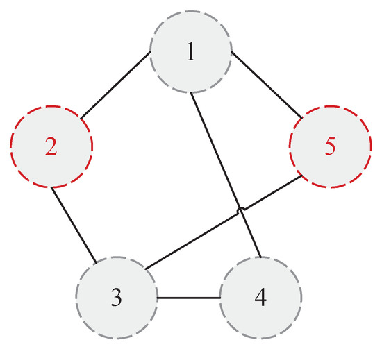 This paper mainly analyzes the situation that the accuracy of local fault diagnosis decreases, and proposes the corresponding topology-switching strategy. Taking the MAS with 5 agents as an example, as shown in Figure 3, and assuming that agent 2 and agent 5 are faulty, for two common situations that may lead to low fault-diagnosis accuracy, the topology-switching strategy is as follows: