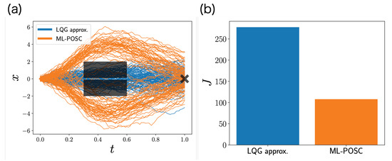 The system of HJB-FP equations appears in the mean-field game and control [28,29,30], and many numerical algorithms have been developed [31,32,33]. Therefore, unlike the conventional POSC, ML-POSC can be solved in practice using these algorithms. Furthermore, unlike the mean-field game and control, the coupling of HJB-FP equations is limited to the optimal control function in ML-POSC. By exploiting this property, more efficient algorithms may be proposed for ML-POSC [34].