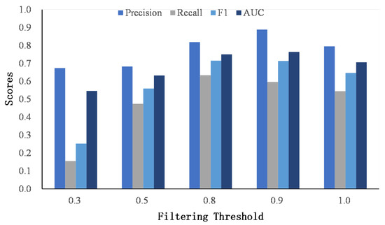 The comparison of the filtering threshold on Foursquare–Twitter.