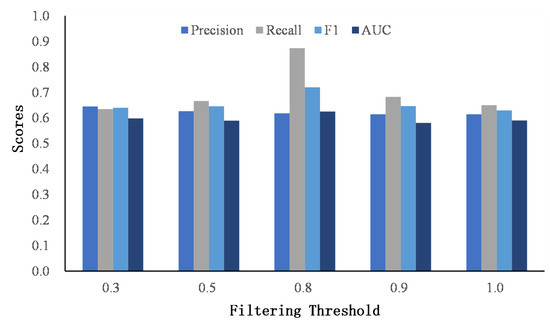 The comparison of the filtering threshold on Flickr–Yelp.