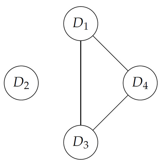 Let us consider an example that uses the proposed approach. Suppose we have a set of four local tables . Each of them contains a set of five conditional attributes and a decision attribute d. We assume that , and for each of the tables. For the purposes of this example, the conditional attributes in the tables are quantitative. The local tables defined above are given in Table 2.