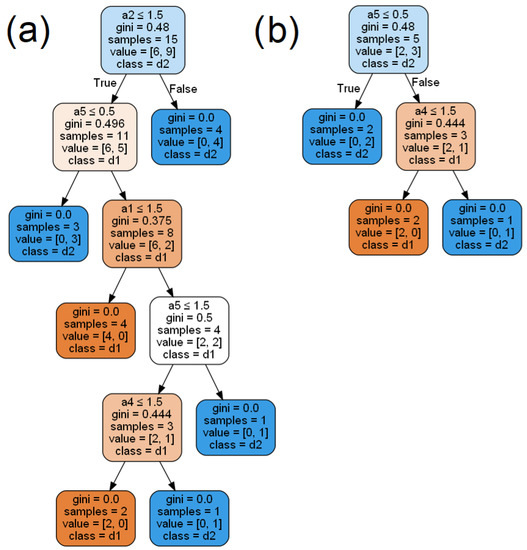 Decision trees created for aggregated decision tables. (a) The aggregated table (b) The aggregated table .