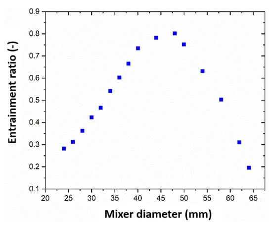 The impact of different mixer diameters on the ejector entrainment ratio.