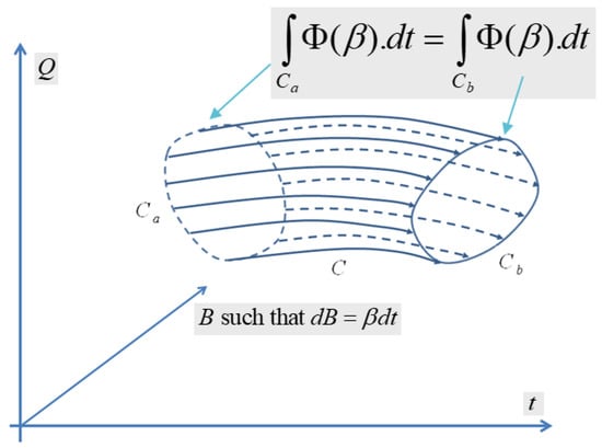 We can see that by applying Poincaré–Cartan integral invariant [107] to the Massieu characteristic function, it is possible to derive generalized variational principles from the Souriau Lie group thermodynamics model, as illustrated in Figure 3. For the Souriau model, an extension of the Poincaré-Cartan integral invariant is provided by with . The variational model for an arbitrary path is .