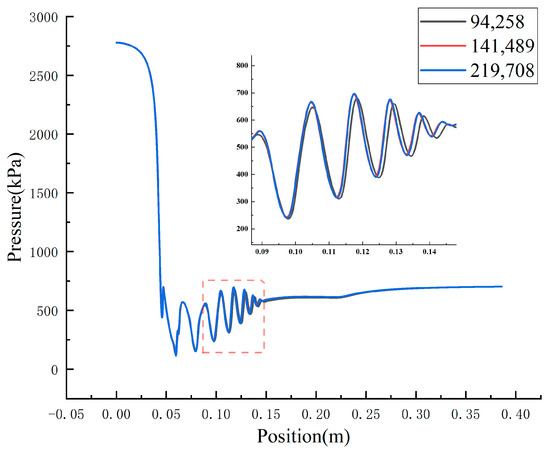 The pressure distribution under different mesh numbers.