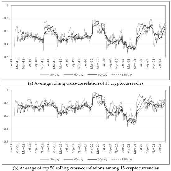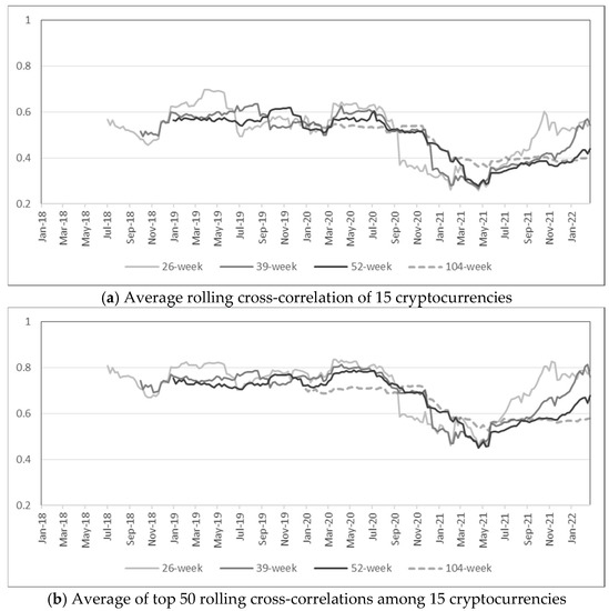 32] and Coin Metrics (coinmetrics.io). Daily price data denominated in USD were collected from 1 January 2018 to 28 February 2022, and converted into weekly returns (weekly returns were used to mitigate any inconsistency in time for computing daily closing price). The analysis focused on the crypto market since 2018 because cryptocurrency funds reveal distinct characteristics in the post-ICO (initial coin offering) bubble period [