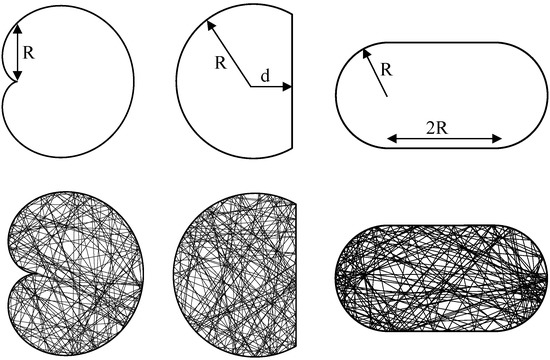 - Nöckel, J.U.; Stone, A.D. Ray and wave chaos in asymmetric resonant optical cavities. Nature 1997, 385, 45–47. [Google Scholar] [CrossRef]
