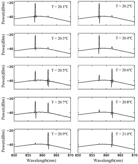 The spectra observed in the experiments of fully chaotic billiard lasers occasionally contain a couple of peaks instead of one single peak even when the injection current is much larger than the threshold as one can see in Figure 14. In the next section, we show by the SB model simulation that this phenomenon can be explained by the temperature fluctuation of the billiard lasers.