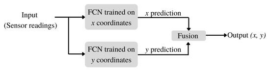 The end-to-end structure of the proposed method can be seen in Figure 4. Firstly, signal amplitudes are passed to each model as input. Then, x and y coordinate predictions are obtained from the networks separately. Lastly, a fusion is performed to obtain the final (x, y) coordinate by combining both predictions as a single output.