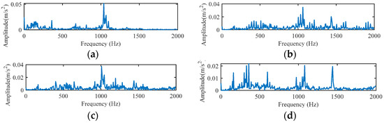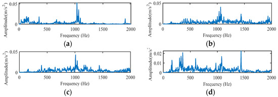 Raw vibration signal spectrum. (a) NOR, (b) IRF, (c) ORF, (d) BF.