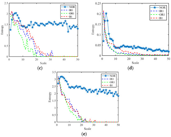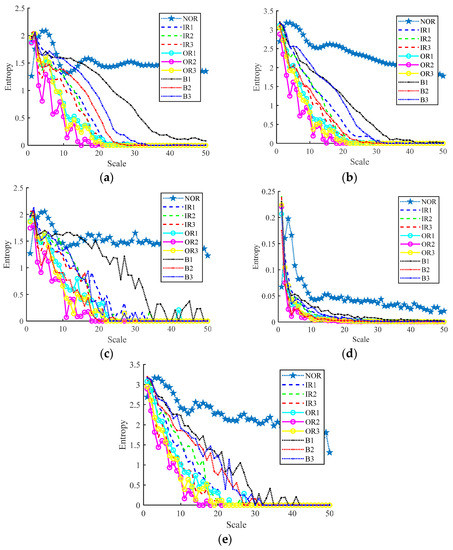 Entropy curve under different working conditions. (a) RCMFDE, (b) RCMDE, (c) MFDE, (d) MFE, (e) MDE.