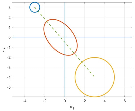 In this work, we have purposefully chosen to work in the natural parameter space of multivariate Gaussians (mean vector, , and covariance matrix, Σ) and address the problem formulation in a completely Riemannian context. We are aware of the usual dually flat constructions [2,15,16] afforded by information geometry using divergence measures and the Legendre transformation. Though elegant in their algebraic constructions, these alternate parameterizations have yet to be employed in most statistical and machine-learning applications. Hence, we develop all geometric motivations and consequential mathematical derivations using Riemannian geometry and the natural parameter space, i.e., we employ the Fisher information matrix metric tensor and find the length-minimizing curve to the constraint set.
