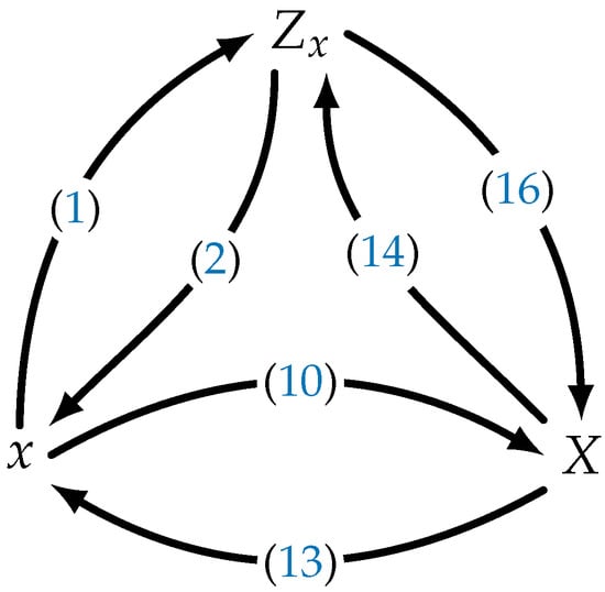Note that in the derivation of (13), the case for was considered; thus, the sequence x has a period K. Here, on the other hand, we consider the sequence x to be -periodic. Therefore, (13) is adopted accordingly by substituting K by . Next, we rearrange terms and obtain
