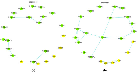 Of the generated daily correlation graphs with a large drop in GBE, those of Figure 2 are around late February 2020, when the threshold θ for edging is 0.6.